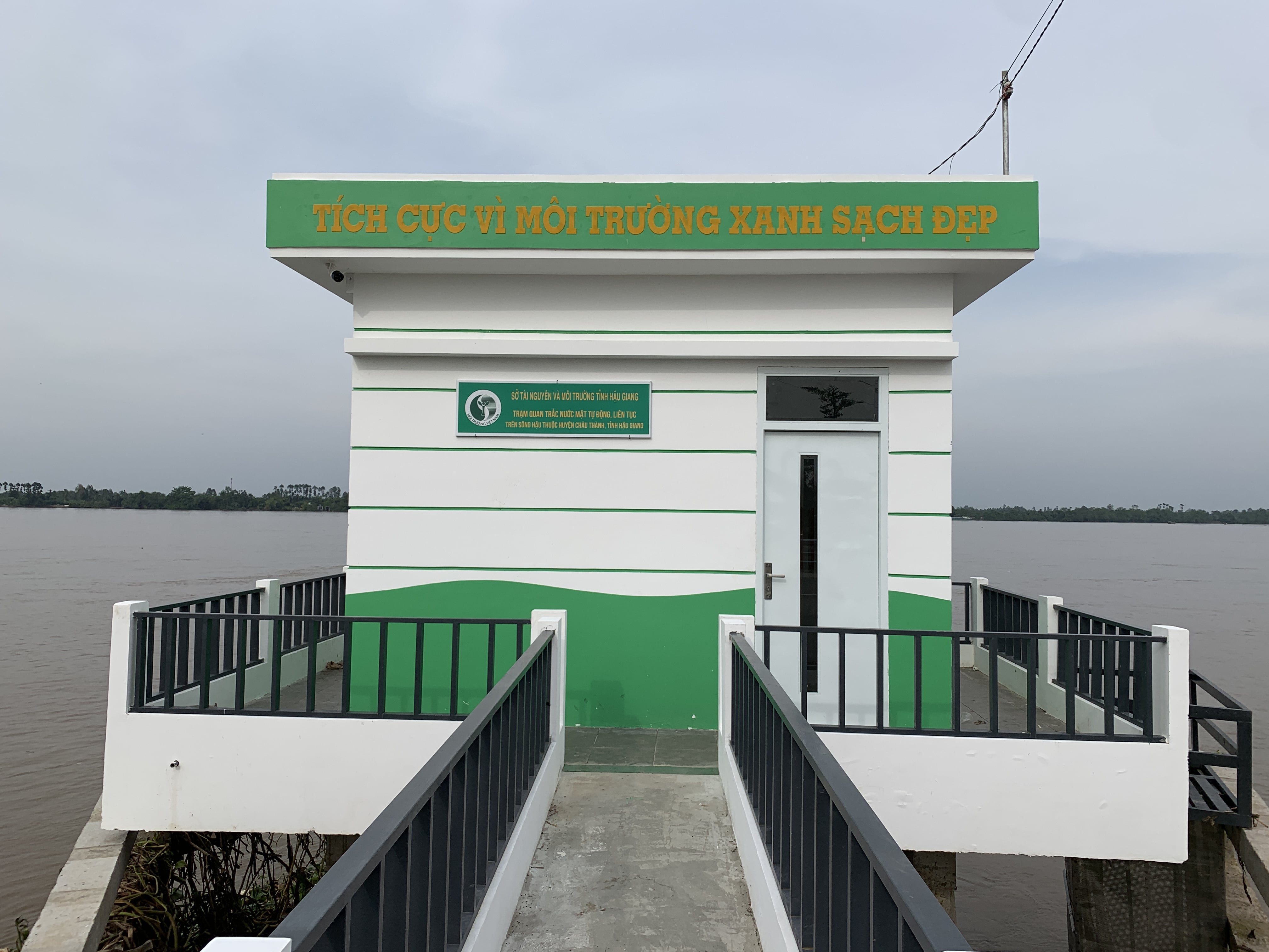 Trạm quan trắc nước mặt tự động liên tục trên Sông Hậu thuộc huyện Châu Thành, tỉnh Hậu Giang