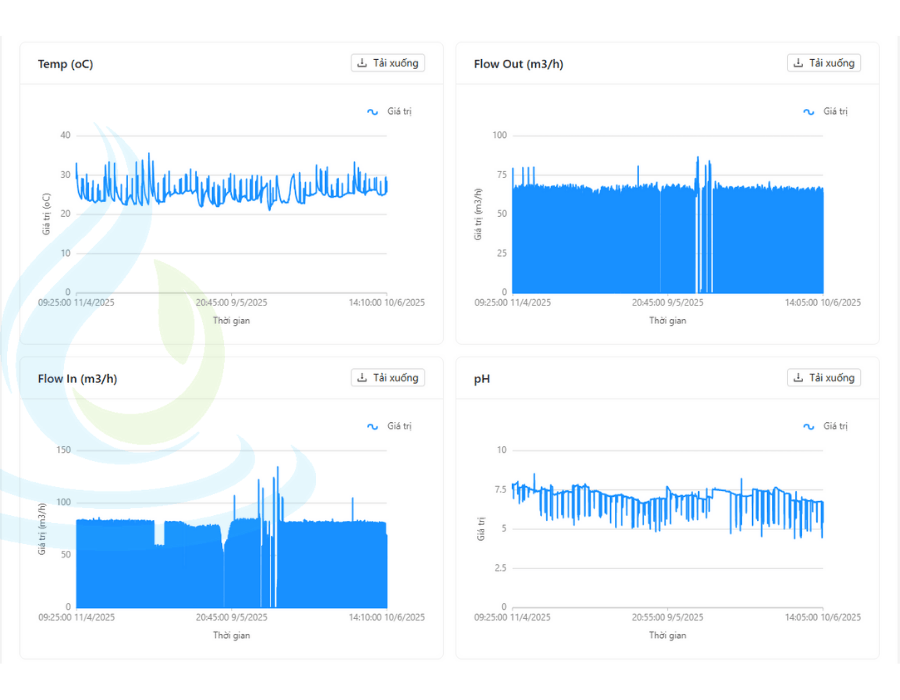 Hệ thống quan trắc nước thải online giúp doanh nghiệp xây dựng một nền tảng dữ liệu đầy đủ, liên tục và có tính minh bạch cao trong quá trình vận hành. Tất cả các thông số được ghi nhận, lưu trữ và truy xuất một cách hệ thống, thay vì phụ thuộc vào ghi chép thủ công hoặc các báo cáo rời rạc.