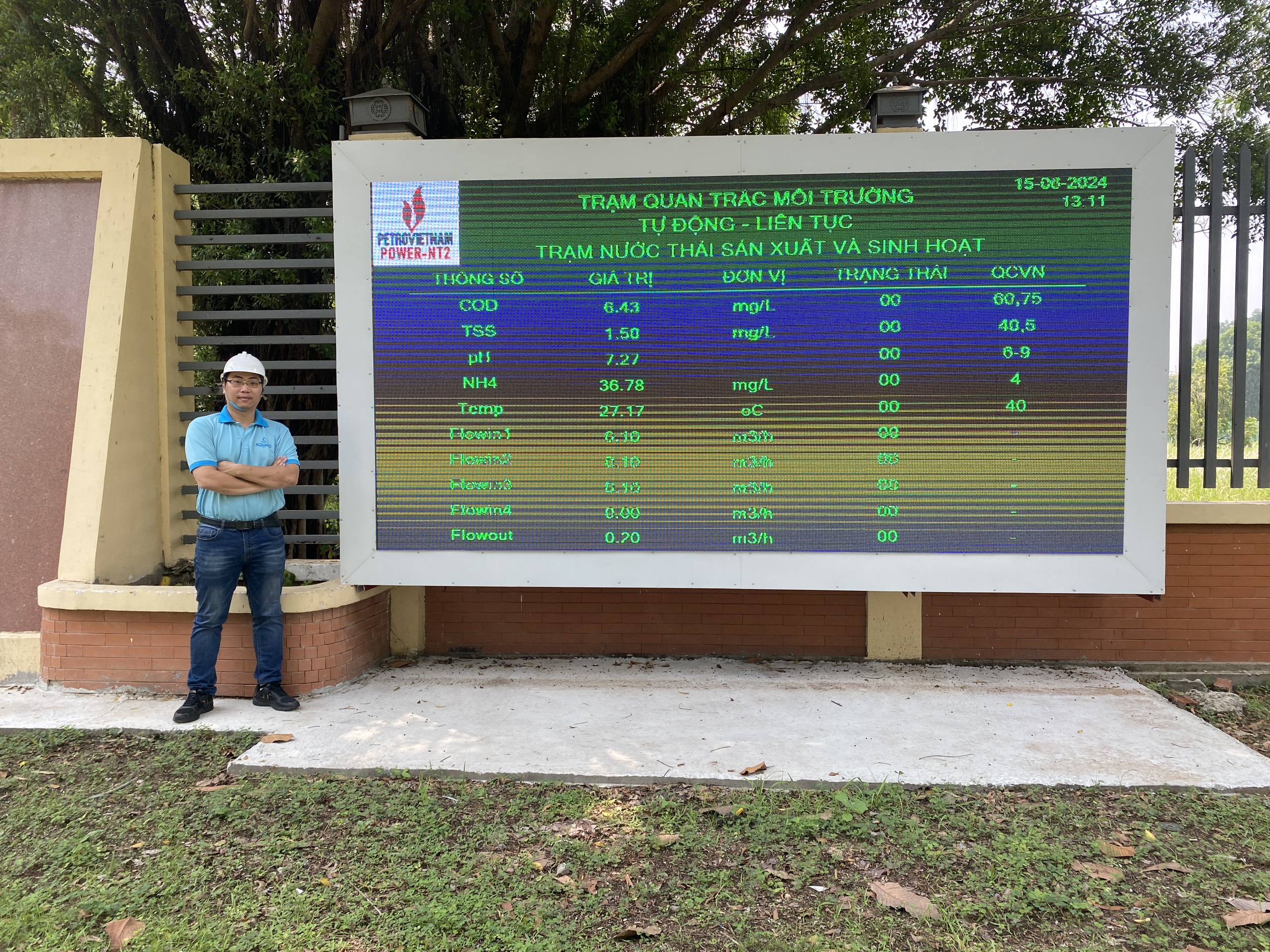 Màn hình hiển thị dữ liệu quan trắc nước thải tự động nhà máy nhiệt điện Nhơn Trạch.