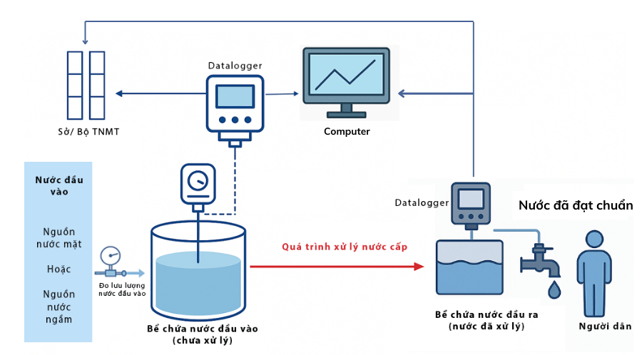 Quan trắc chất lượng nước cấp online là quá trình sử dụng các thiết bị cảm biến thông minh và hệ thống tự động để đo lường, phân tích các chỉ số chất lượng nước sạch tại các nhà máy cấp nước hoặc trên mạng lưới phân phối. Dữ liệu đo được cập nhật liên tục và truyền trực tiếp về trung tâm điều khiển, cho phép các cơ quan quản lý như Sở Tài nguyên và Môi trường hoặc Bộ Tài nguyên và Môi trường giám sát từ xa.
